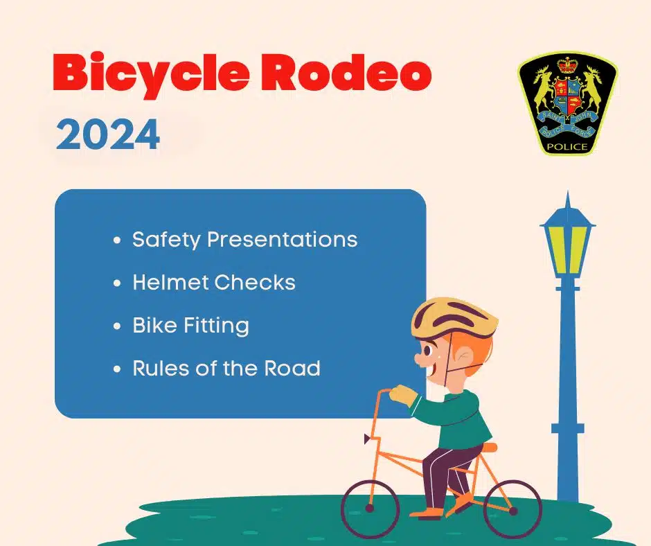 The Rodeo will be conducted by Community Engagement Officers. They will be performing safety presentations, doing helmet checks and bike fittings.
