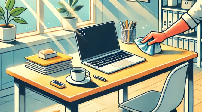 - Remove Everything: Clear off your desk entirely so you can start with a clean slate.