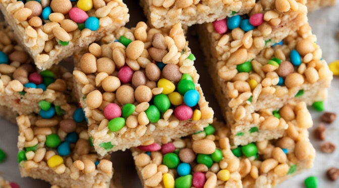 Thought to have been invented at the Kellogg Company in the late 1930s, the treats are made of Rice Krispie cereal and melted marshmallows, though sometimes the marshmallows can be substituted with caramel or syrup as the binding agent.